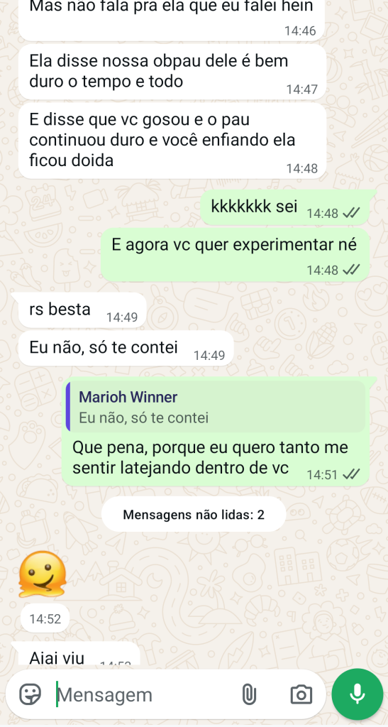“Cara, sinceramente. Tenho 52 anos já, nunca achei que poderia viver isso dinovo, aliás, nem com 18 anos de idade eu tinha essa força kkkkkkkk.”